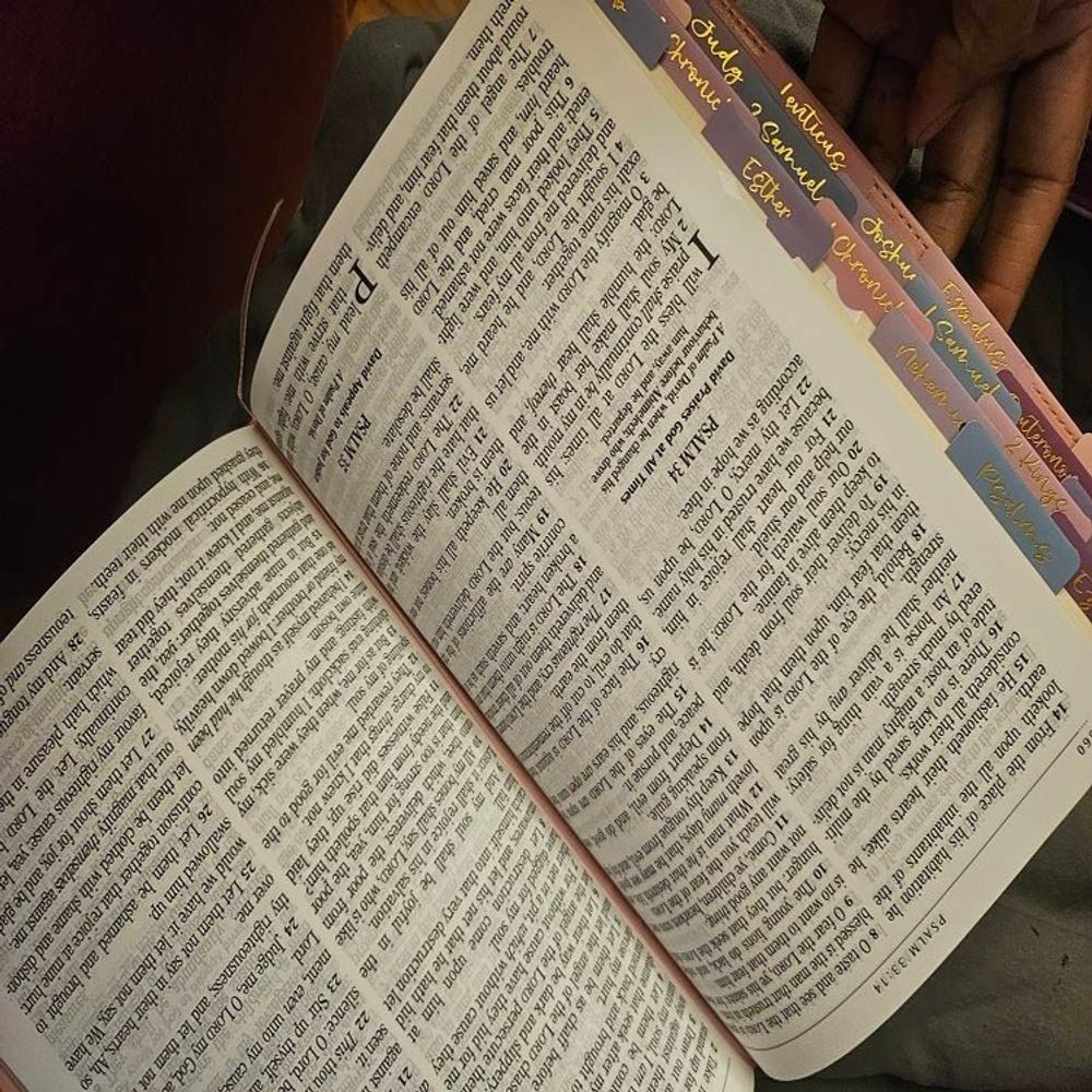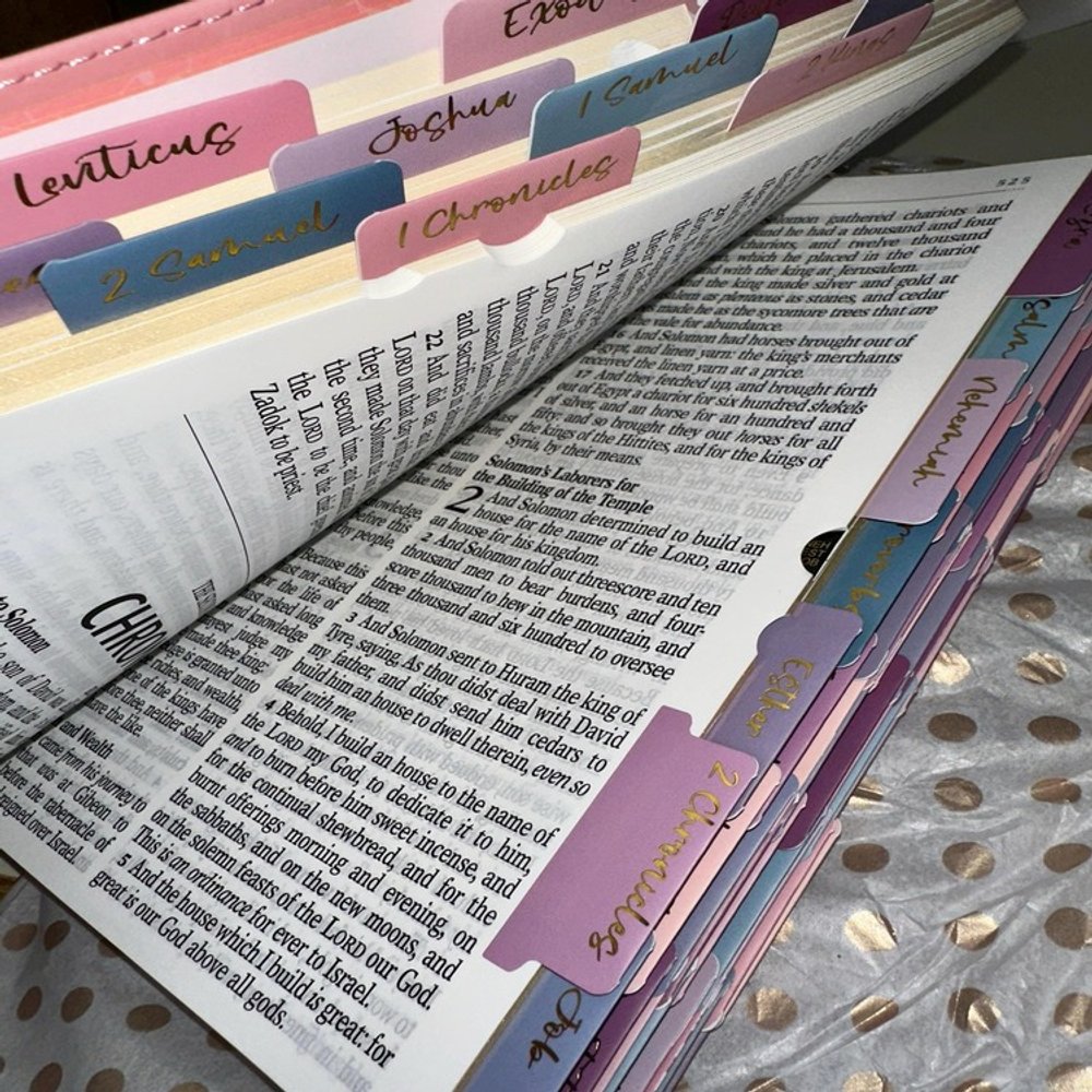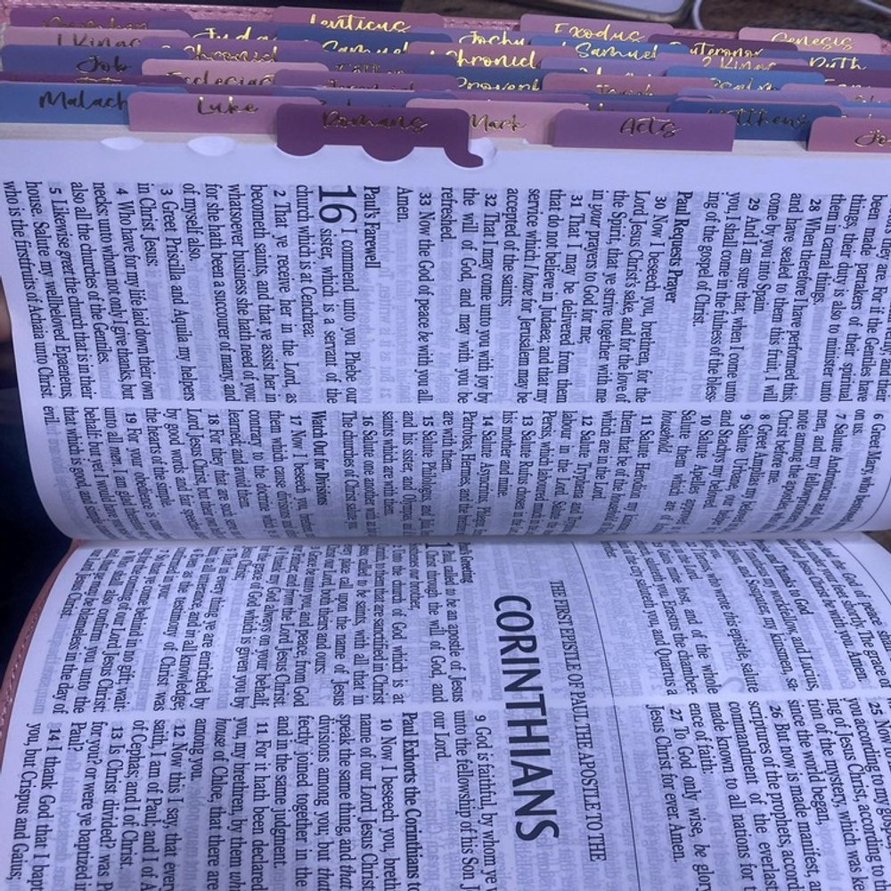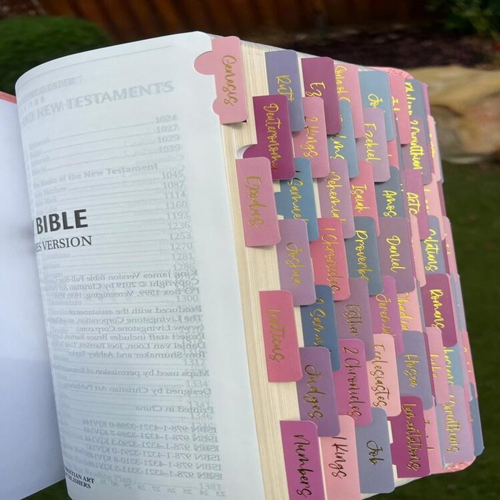 This beautiful Pink Real Leather Giant Print King James Version Bible is the ideal gift for that special woman who raised you—whether she's your mother, grandmother, aunt, teacher, or mentor. The easy-to-read 14-point type reduces eye strain, making her daily quiet time with the Lord more comfortable and enjoyable ✨. Each Bible is sourced from trusted Christian publishers and lovingly enhanced with handmade gold-lettered tabs, creating a truly special finished product 🎁.